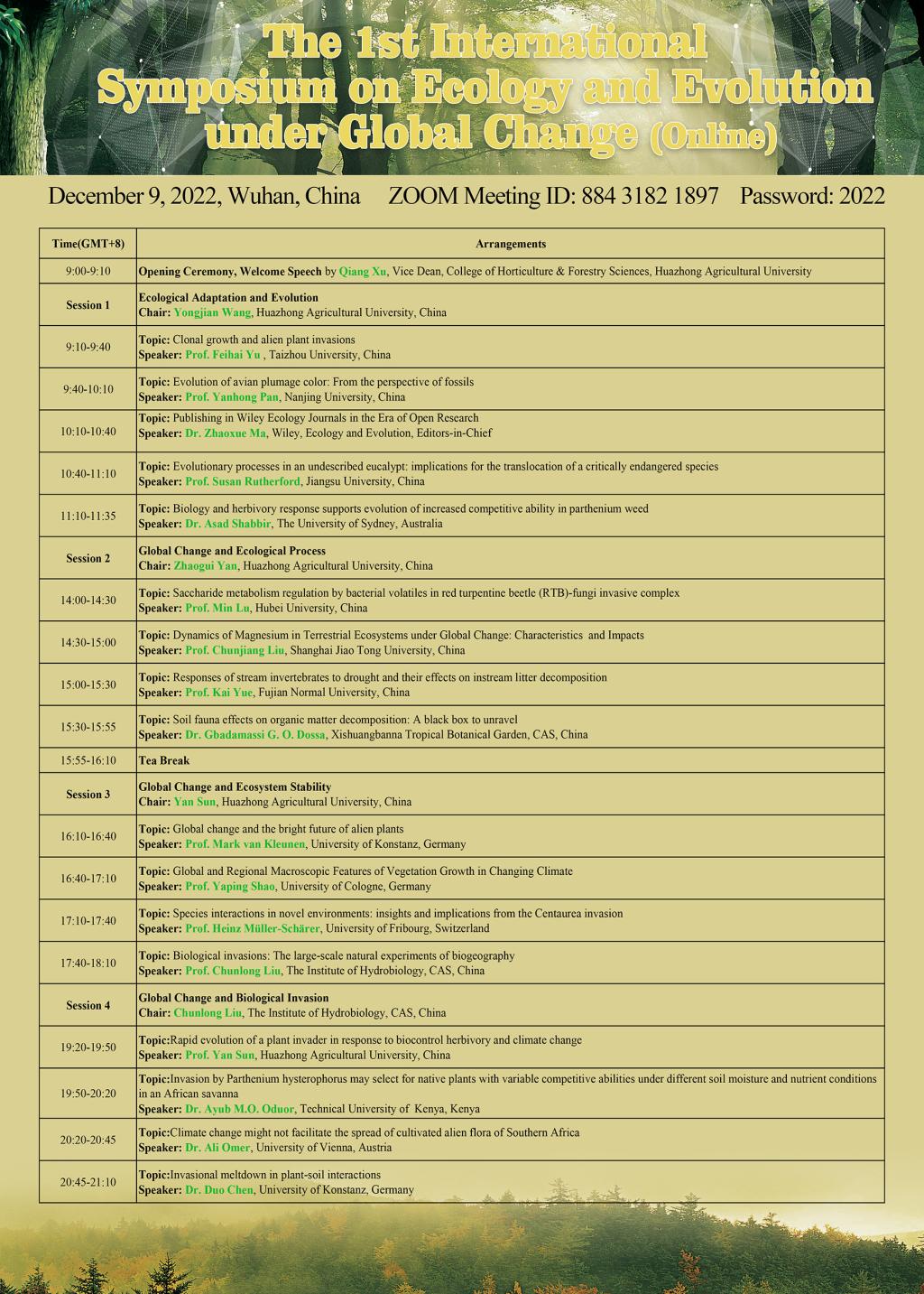 第一届全球变化下生态与演化国际研讨会(在线)