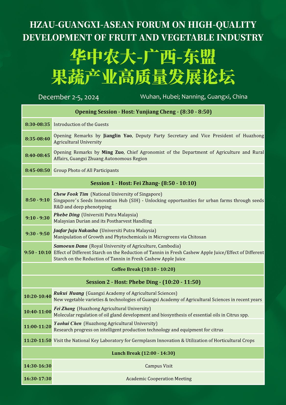 HZAU-GUANGXI-ASEAN FORUM ON HIGH-QUALITY DEVELOPMENT OF FRUIT AND VEGETABLE INDUSTRY华中农大-广西-东盟 果蔬产业高质量发展论坛