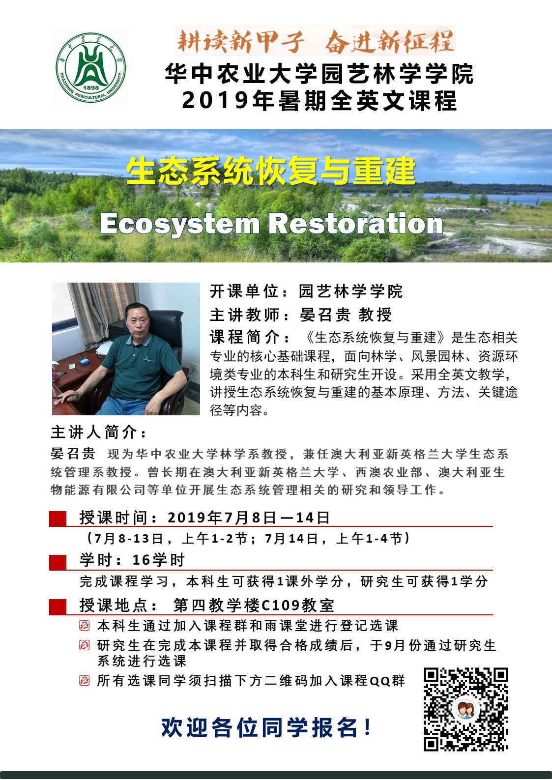 2019年暑期全英文课程——生态系统恢复与重建