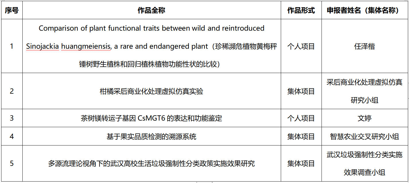 为培养学生的创新思维及实践能力,艾弗森贝博ballbet官网开展了第十四届“神农杯”大学生课外学术作品竞赛初赛工作。经前期宣传动员,自主申请,全院共有30个项目,近300余名学生参加本次竞赛。经学院综合讨论,根据专家评审意见,拟推荐5个项目参加校级比赛,具体结果如下: