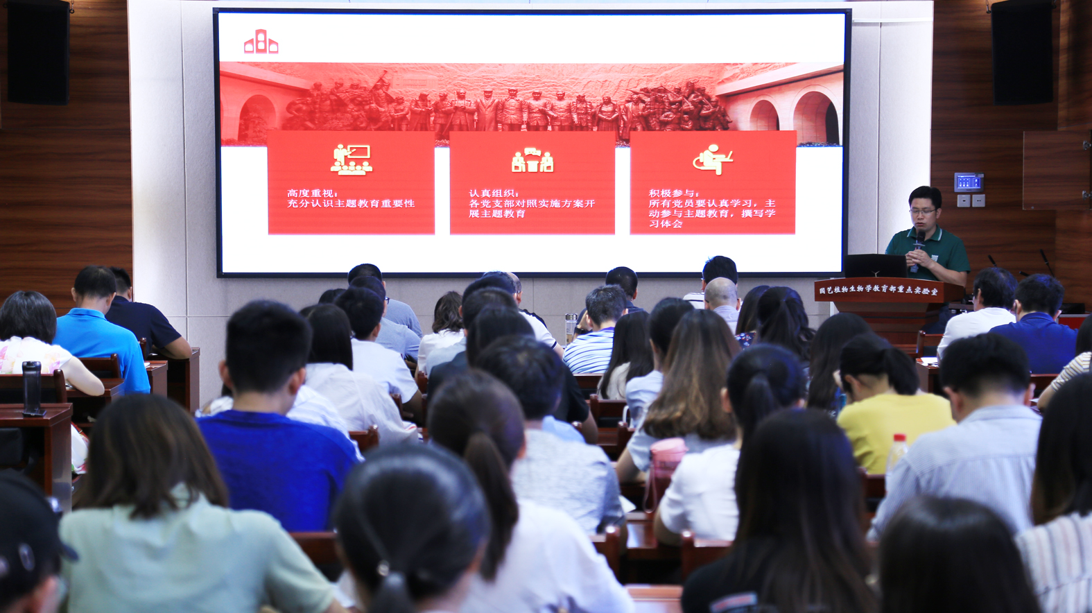 9月22日下午,学院在园林南楼204报告厅召开“不忘初心、牢记使命”主题教育动员大会,深入学习贯彻习近平新时代中国特色社会主义思想,认真学习学校主题教育精神,介绍学院主题教育实施方案。学院全体教工党员,研究生、本科生党员代表参会,党委副书记蔡江主持会议。