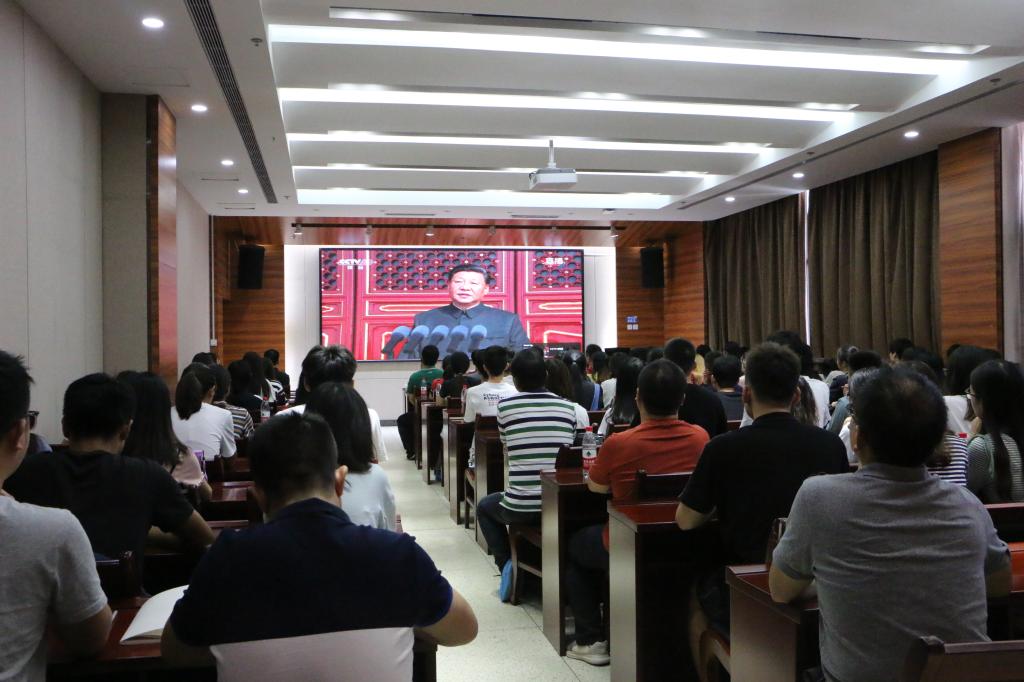 大屏幕上,大家同心同德,满怀着对祖国的赤忱丹心;会议室里,大家与国同庆,掌声不断响起,欢呼声接连涌来。我们必将铭记这一天,感念历史,放眼未来,中国的明天将在我们手中创造,中国必将更加美好!