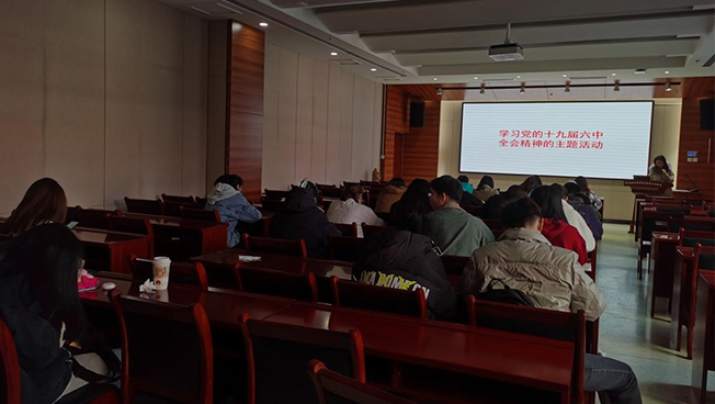 11月22日中午果树专硕1班在园林南楼204召开班会,专题学习十九届六中全会精神。