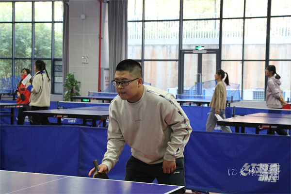 祁雄辉虽然已是研三,但仍积极参与比赛。在场上,他灵活自如,忽而稳削防守,忽而大板扣杀,大开大合,最终喜得冠军。他总结经验道:“在场上要及时平衡好心态,多上台、少进攻,抓住别人的失误,争取一击拿下。”