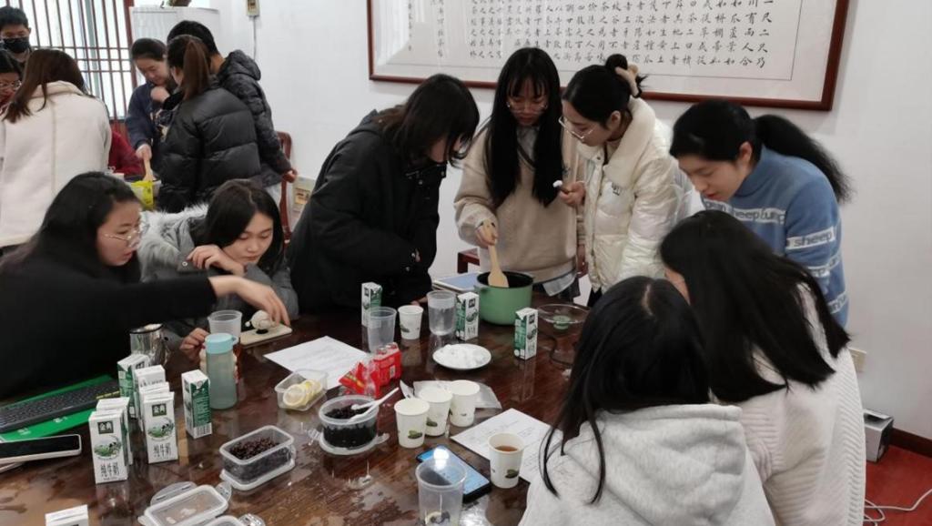12月21日下午两点半,由贝博ballbet官网茶学系主办的冬至茶会在耕读茶室举行。活动伊始,主持人杨淑雅同学向大家介绍了红茶、绿茶、青茶的基本知识及保健作用,倡导大家常饮茶科学饮茶,随后袁丽萍同学讲解了奶茶的调配方法。