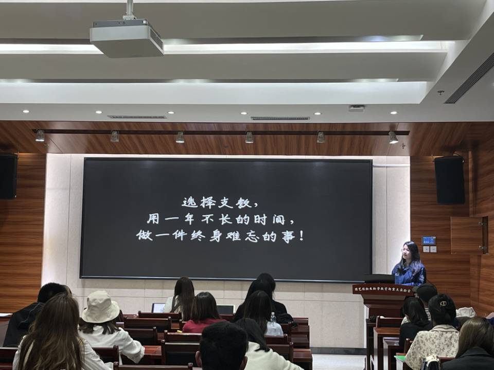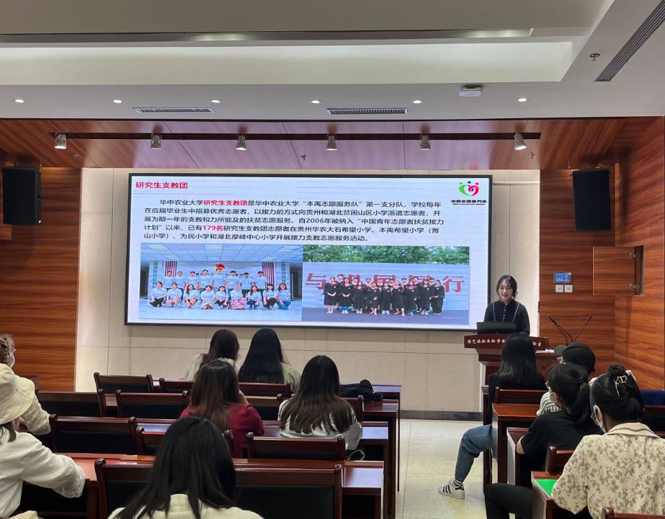 3月13日晚,贝博ballbet官网研究生志愿服务中心在南楼204开展‘牵挂·传承’支教志愿故事分享会,邀请到第十六届研究生支教团成员杨子萱同学和王萌茜同学,分享她们走进大山深处,激情燃烧的青春故事。