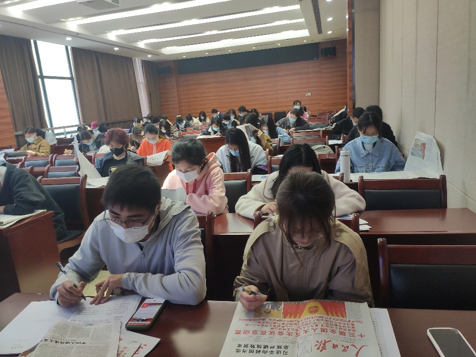 紧跟时事,提升政治素养。观看视频之后大家自由阅读了最新一期的报纸。借助报纸了解当前时事政治,关注身边大事,并写下学习感悟,以提高思想政治素养。