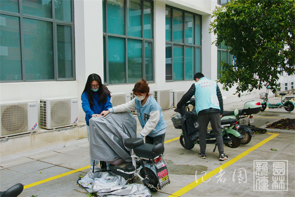 志愿者们主要对园林北楼和园林南楼附近区域的车辆进行了整理摆放。园林2101班的王妍说:“虽然今天天气情况不好,但是我们还是选择报名本次志愿服务活动。当我们看到车辆被摆放的整整齐齐时,大家的心情瞬间就变好了,觉得这点辛苦是值得的。”