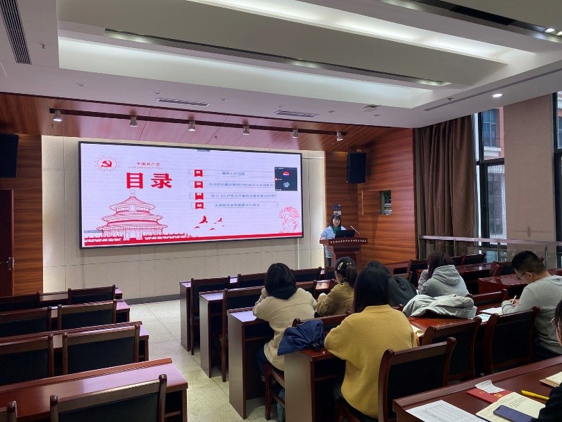 会上,支部书记赵阳对2021年支部工作进行了述职汇报,系统总结了党支部在过去一年所做的工作和取得的成绩,同时也剖析了不足之处,指出接下来需要改进的地方以及整改措施。随后,俞珺慈等同志对支部建设提出建议:一是丰富党史学习的形式,加强理论知识的学习;二是增加志愿活动的频率,增强党支部成员之间的沟通交流。