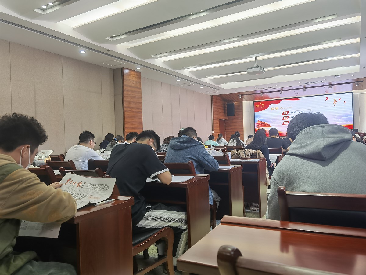 4月7日中午,艾弗森贝博ballbet官网组织大学生于南楼204会议室进行了周四理论学习。本次理论学习分为视频学习、自由读报和理论知识有奖竞答三个环节。