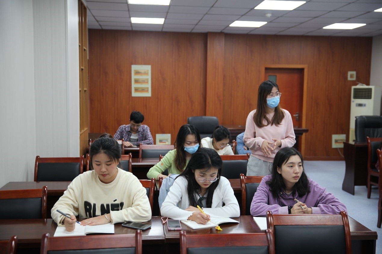 李静文同志在学习过后向同志们分享了她的感受,她向大家提出倡议,作为新时代的研究生,要务实基础,努力科研、为国争光;孙小梦同志谈到,有幸生在和平的国度,是强大的祖国赋予了我们安全感,我们应在跟党走的基础上努力奋斗。