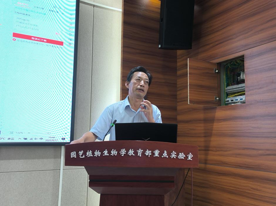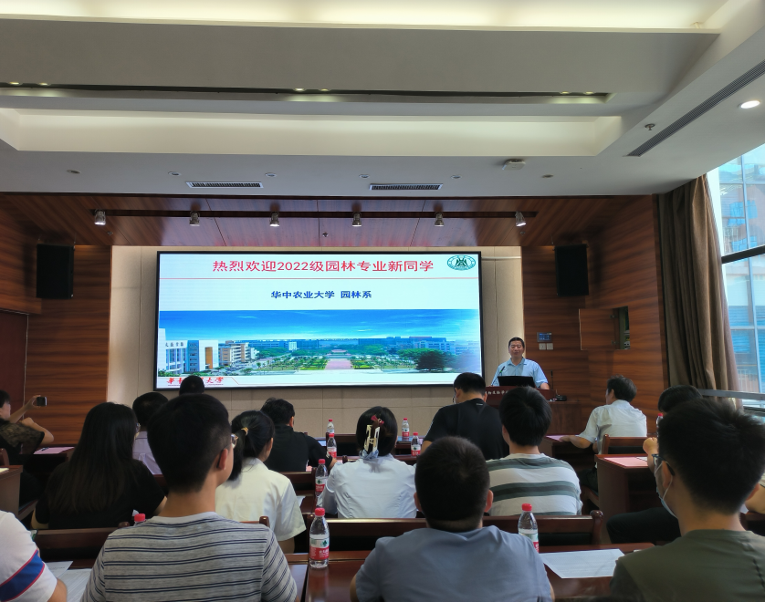 随后产祝龙教授主持了园林系研究生新生入学教育,从学校的校园环境、办学规模、历史沿革开始,过渡到艾弗森贝博ballbet官网的专业历史、学科建设与发展。产祝龙教授向新生们介绍了园林系22名教师组成的专业团队,结合各位教师研究方向,展示了包含多种花卉的广泛专业领域以及多项辉煌的科技项目与成果,让新生们对华农园林系在国家乃至世界相关领域的重要地位和贡献有了更加深刻的认知。最后,产祝龙教授也传达了对新生们的殷切期望,引用了蔡元培先生的“抱定宗旨、砥砺前行、敬爱师友”,希望新生们能坚定梦想,努力奋斗,善于发现问题、提出问题。