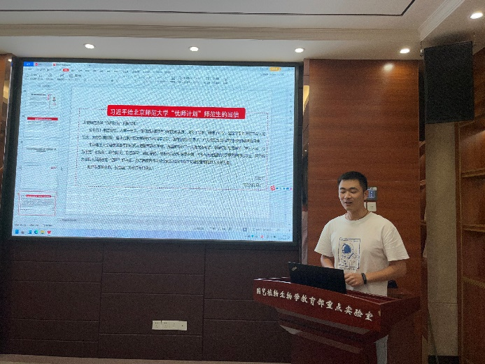 9月23日,果树学研究生第四党支部在南楼206会议室开展9月主题党日活动。活动主要分为学深悟透《习近平谈治国理政》(第四卷)、学习贯彻习近平总书记给北京师范大学“优师计划”师范生重要回信精神、支部党员研讨交流三个部分。党支部书记刘旭主持会议,支部全体党员共同参与学习。