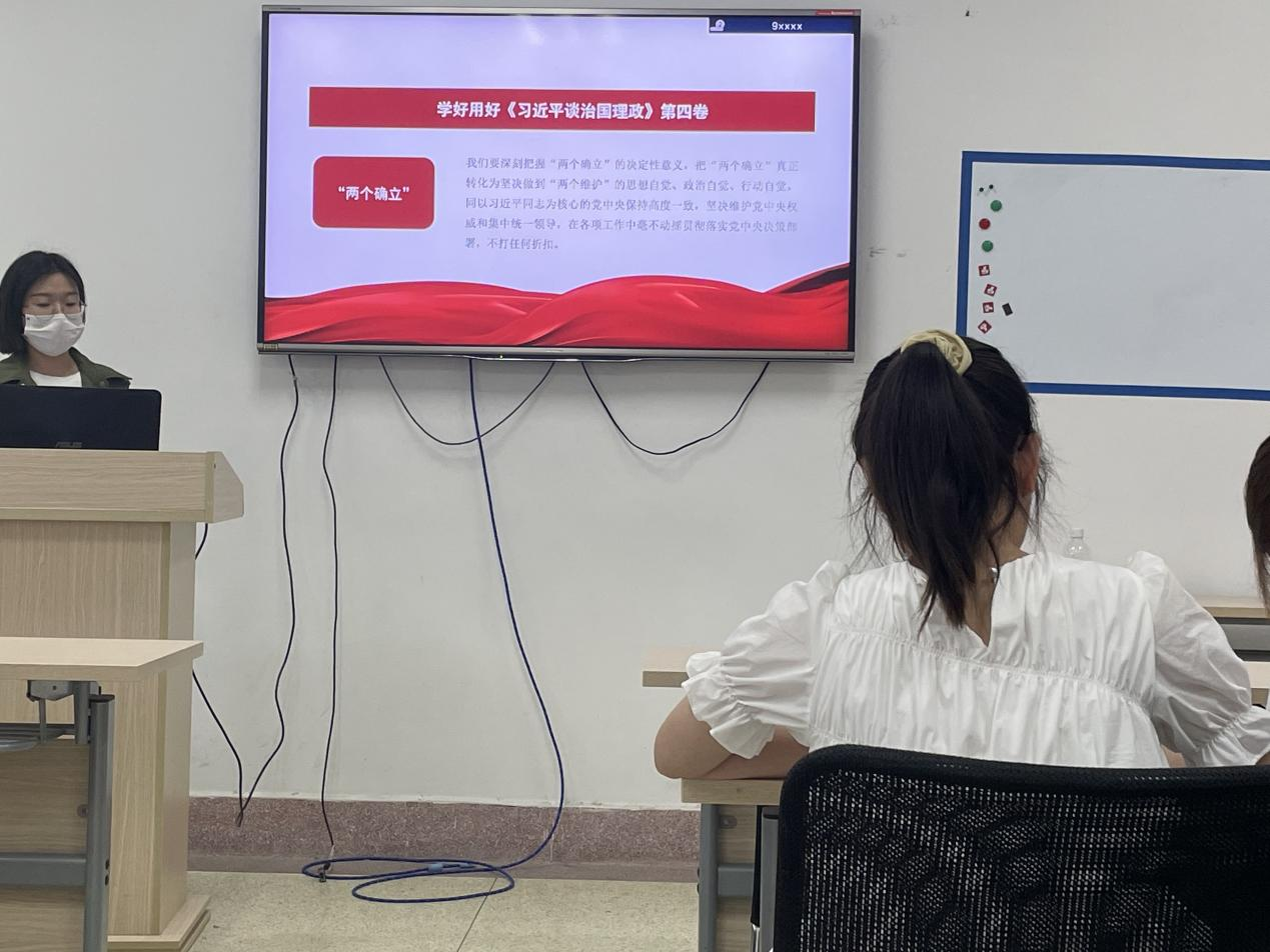 会上,支部书记杨丽同志领学了《习近平谈治国理政》(第四卷)。《习近平谈治国理政》(第四卷)生动反映了以习近平同志为核心的党中央,面对百年变局和世纪疫情相互叠加的复杂局面,面对世所罕见、史所罕见的风险挑战,团结带领全党全国各族人民在中华大地上全面建成小康社会、开启全面建设社会主义现代化国家新征程的伟大实践,具有强烈的历史纵深感、时代厚重感和未来愿景感。
