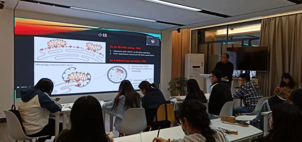 李柽钖从三个板块来开始介绍他的研究课题,他先后介绍了细胞器互作以及EMCS在细胞活动的重要作用、内质网与线粒体互作在植物细胞中的研究进展等相关问题、植物EMCS蛋白TraB family proteins的鉴定、TraB1与VAP27的互作定位效应,以及细胞生物学在区园艺植物研究中的应用。