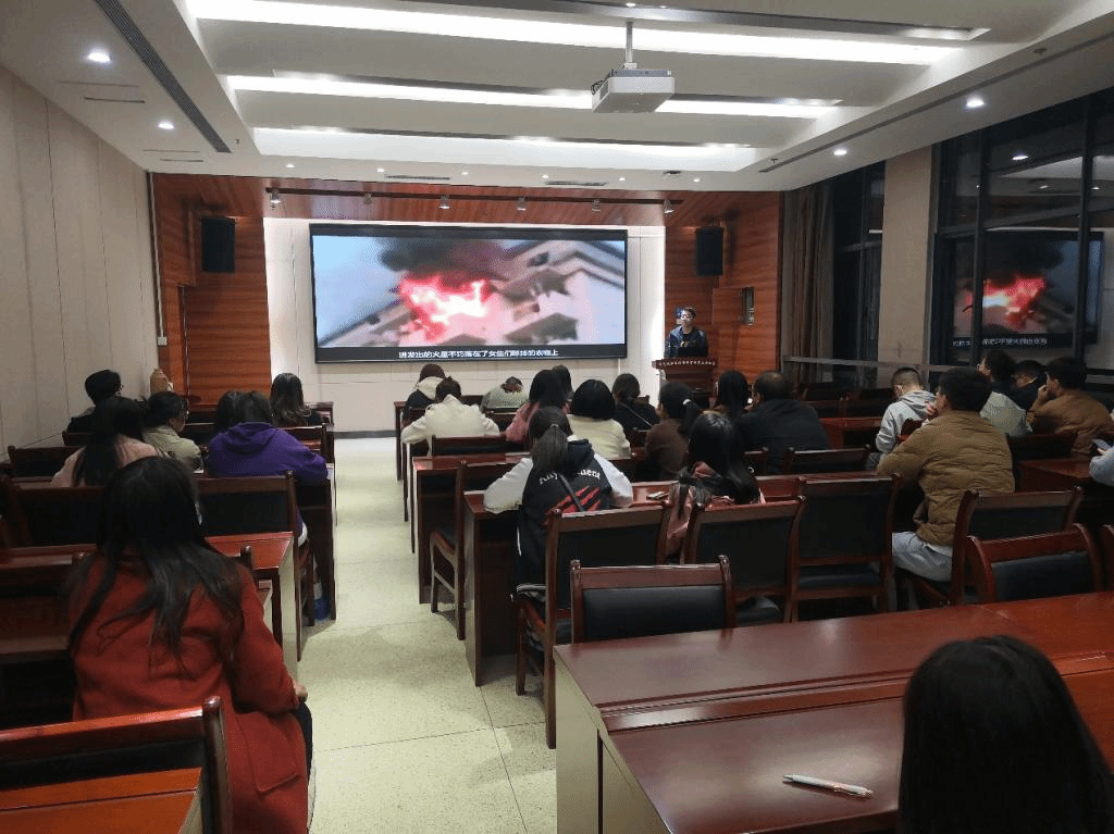 接着,魏振宇同学围绕“防火基本知识”、“高校火灾原因分析”、“火灾的预防与管控”、“火灾事故处理”、“火场逃生与疏散”、“消防事故责任追究”等方面进行了详细讲解。他谈到危险事故的隐蔽性和突发性都在提醒同学们,必须时时刻刻牢固树立“安全第一”的意识,严密防范,居安思危