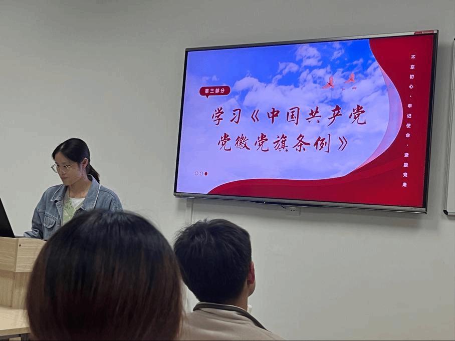 随后,党支部书记管书萍带领同志们学习《中国共产党党旗党徽条例》,大家认真学习党旗党徽生产制作、使用管理、监督问责等方面内容,同志们纷纷表示中国共产党的党徽党旗是中国共产党的象征和标志,维护党徽党旗的尊严就是维护党的尊严,是各级党组织和每名党员必须履行的政治责任。