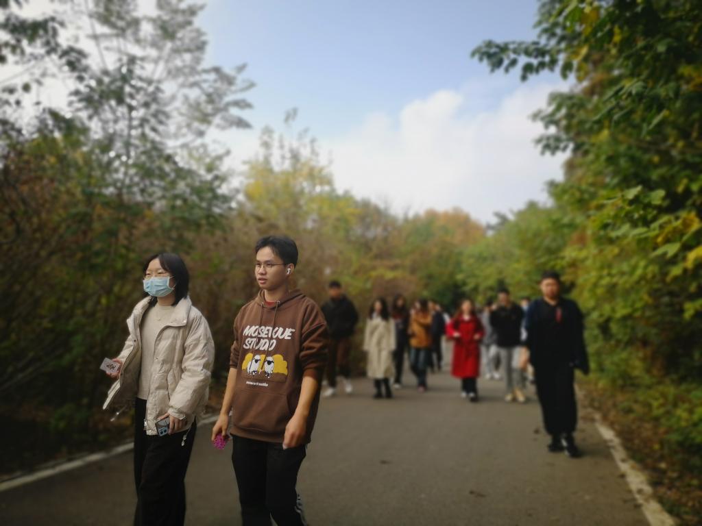徒步过程中,肖晗老师给大家分发了卡片,拿到相同数字卡片的同学为一组,互相帮助,互相交流。肖晗老师表示:“希望每一次活动都能给同学们正向的引导,这次活动主要是从三个方面进行考虑:一是希望同学们在活动过程中能够获得快乐,放松心情;二是想通过活动给同学们提供一个交流的平台和机会,从而增强同学们的交际能力及语言组织能力;三是希望加强同学们彼此间的联系,增强研究生心理委员团队的凝聚力,让大家明白,我们是一起工作的伙伴,更是互帮互助的朋友。”