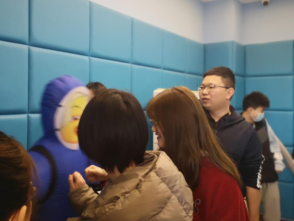 肖晗老师带领研究生心理委员参观展板 肖晗老师带领研究生心理委员参观心理宣泄室