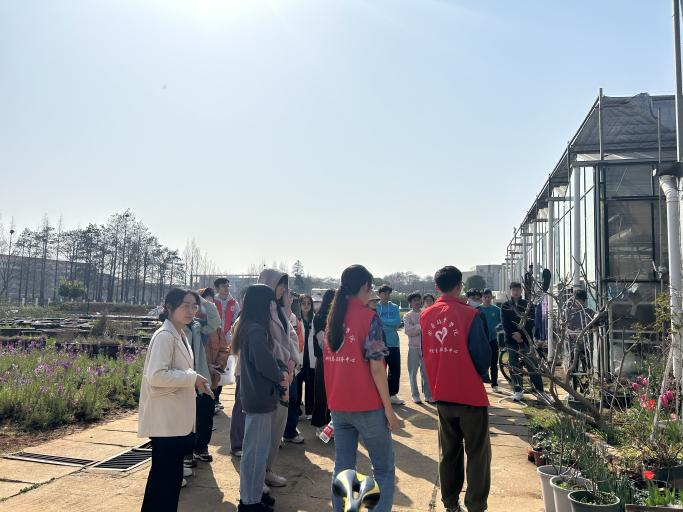 3月4日下午,志愿者岳松青带领大家在花卉基地进行科普学习,结合趣味小故事与大家进行交流分享。岳松青以花卉基地进门右手边的花海为引,向同学们介绍了大花三色堇、三色堇和角堇等品种花瓣基部的条纹和斑点特点,岳松青比喻道,因为花瓣基部像猫咪的胡须一样,所以有“猫儿脸”的俗称。随后同学们共同学习了风信子、郁金香、水仙等花卉植物有关知识,大家自由参观并进行拍照记录。22级研究生李俊杰表示,非常开心能有机会参与这样的活动,与植物近距离接触,了解其生长特点,亲身感受大自然的魅力,与一群热爱花草热爱生活的人进行交流。