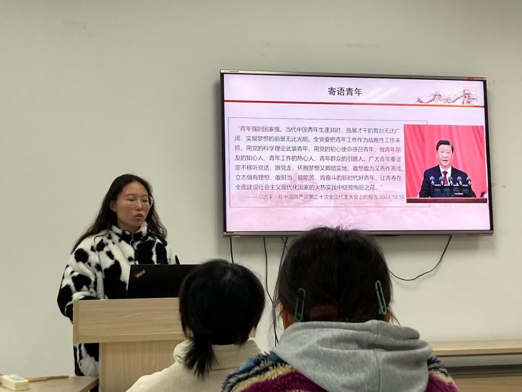3月21日下午,艾弗森贝博ballbet官网南楼七楼第二党支部开展党的二十大宣讲会,本科生“精读精讲”宣讲员游惠婉开展宣讲,党员们共同学习新时代中国青年的奋斗故事,深入理解学习党的二十大精神。