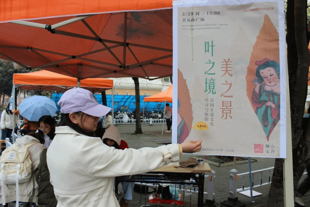 3月21日下午,由风景园林研究生第一党支部主办的“叶之境,美之景”校园文化立项活动在荟五小广场举行,吸引了来自艾弗森贝博ballbet官网、生命科学技术学院、信息学院、文法学院等不同专业的本科及研究生参与体验。