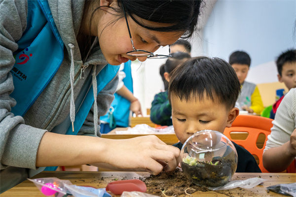 通过“众生的地球·我们共同守护”主题科普与生态瓶制作,张瑜服务队以互动的方式传达生态环境的重要性,唤起了小朋友们爱护地球、保护家园的意识。