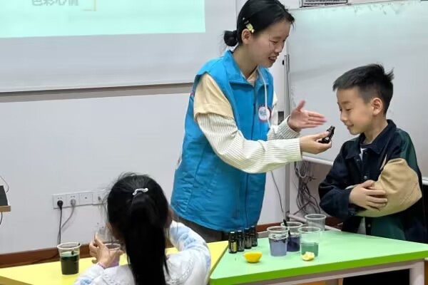 活动结束之后,小朋友们却恋恋不舍,当得知可以拿走最喜欢的一杯溶液时,一位小朋友一下捧着四个杯子说:“我都很喜欢!”此次活动,小朋友们充分展现了儿童的天性——求知欲与创新力。在接下来的科普活动中,张瑜服务队将持续把“科学”融入实践,为青少年儿童带来活灵活现、学有所成的“第二课堂”。