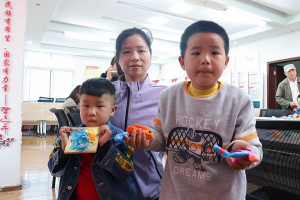 在学习知识的同时张瑜服务队也注重对小朋友动手能力的培养。在园艺2101班贺长娥同学的黏土制作教学后,小朋友们拿起五颜六色的黏土,发挥自己的想象力,制作独属于他们自己的一幅黏土画。在志愿者的辅助下,有的小朋友制作出了颜色鲜艳的立体玫瑰,有的小朋友捏出了憨态可掬的动画人物。小朋友们脸上洋溢着灿烂的笑容,活动现场一时热闹非凡。