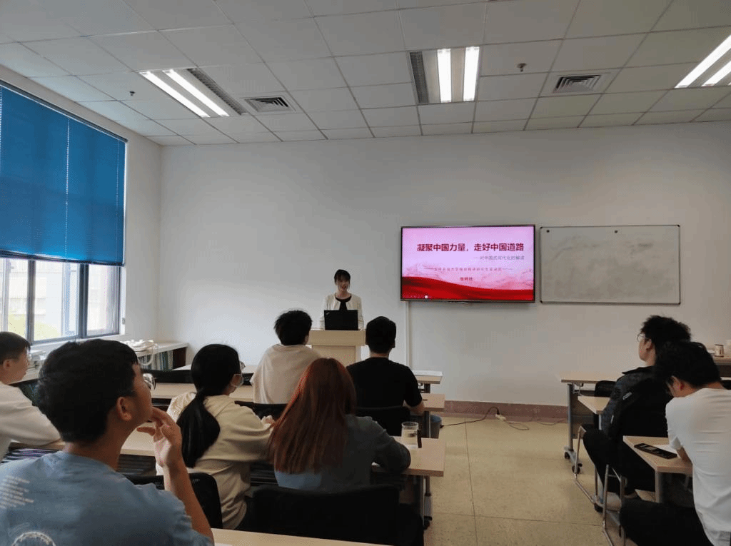 59日,校宣讲团在南楼621会议室开展“秉承时代东风,走好中国道路”为题的理论宣讲会议由覃璐同志主持,研究生“精读精讲”宣讲团成员张梓欣同学领学。