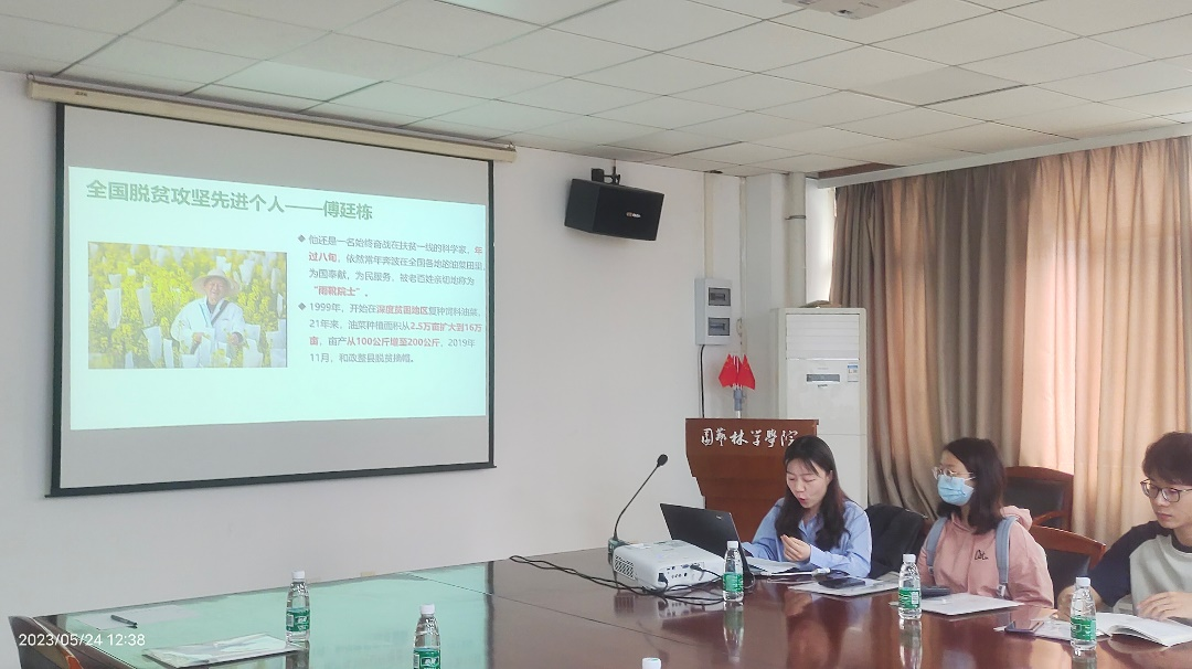 5月24日中午,艾弗森贝博ballbet官网林学研究生第二党支部在园林北楼302会议室开展了“校本文化视角下乡村振兴战略的知与行”宣讲活动,活动由支部副书记常天昊同志主持,学校研究生“精读精讲”宣讲团成员李小惠同志主讲。