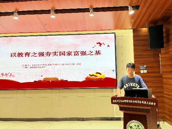 6月27日,艾弗森贝博ballbet官网果树学研究生第四党支部在南楼204会议室以“党支部书记讲党课”的形式专题学习“教育强国”和习近平总书记在文化传承发展座谈会上的重要讲话精神,党支部书记刘旭领学。