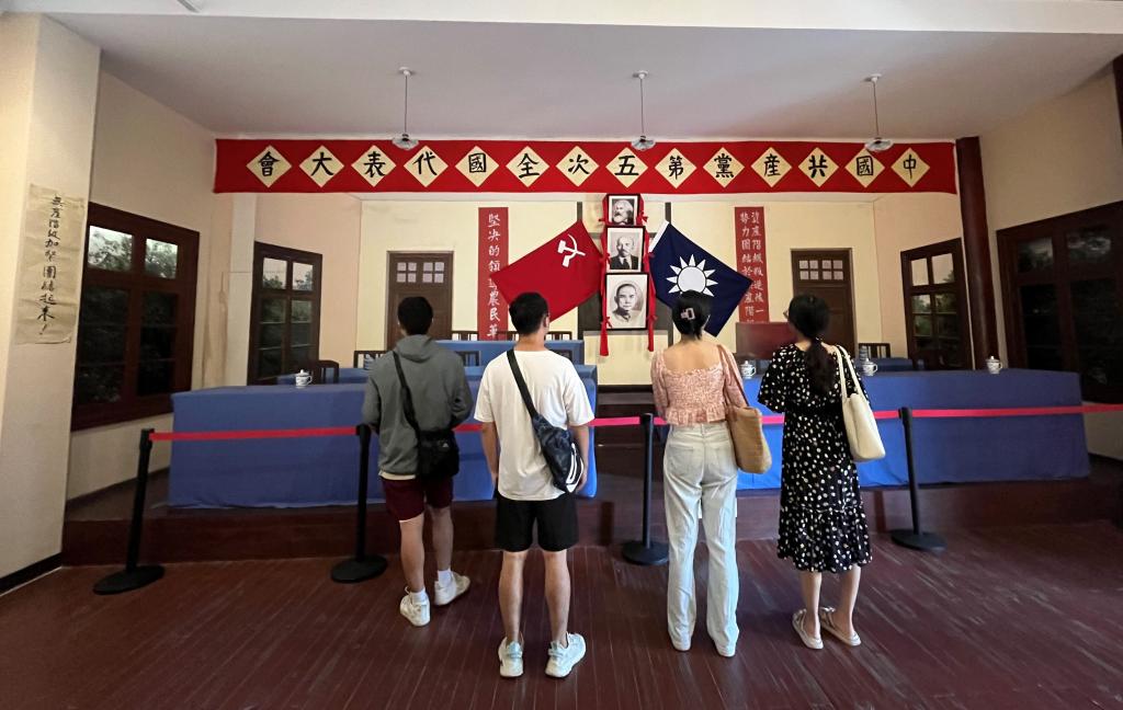 参观中共五大会议复原场地