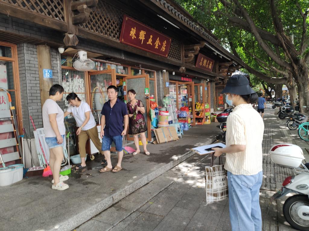 因桂香街两侧行道树多为榕树、香樟树,福州夏季多台风,易造成树枝掉落,在团队成员调研的过程当中,时常会遇到林业巡护人员以及道路清洁人员定时维护路面安全和卫生,为周边居住小区内的居民们家门口的出行安全保驾护航。在每天上午的早市结束之后,也会有负责人员及时引导车辆交通,维护通行秩序。