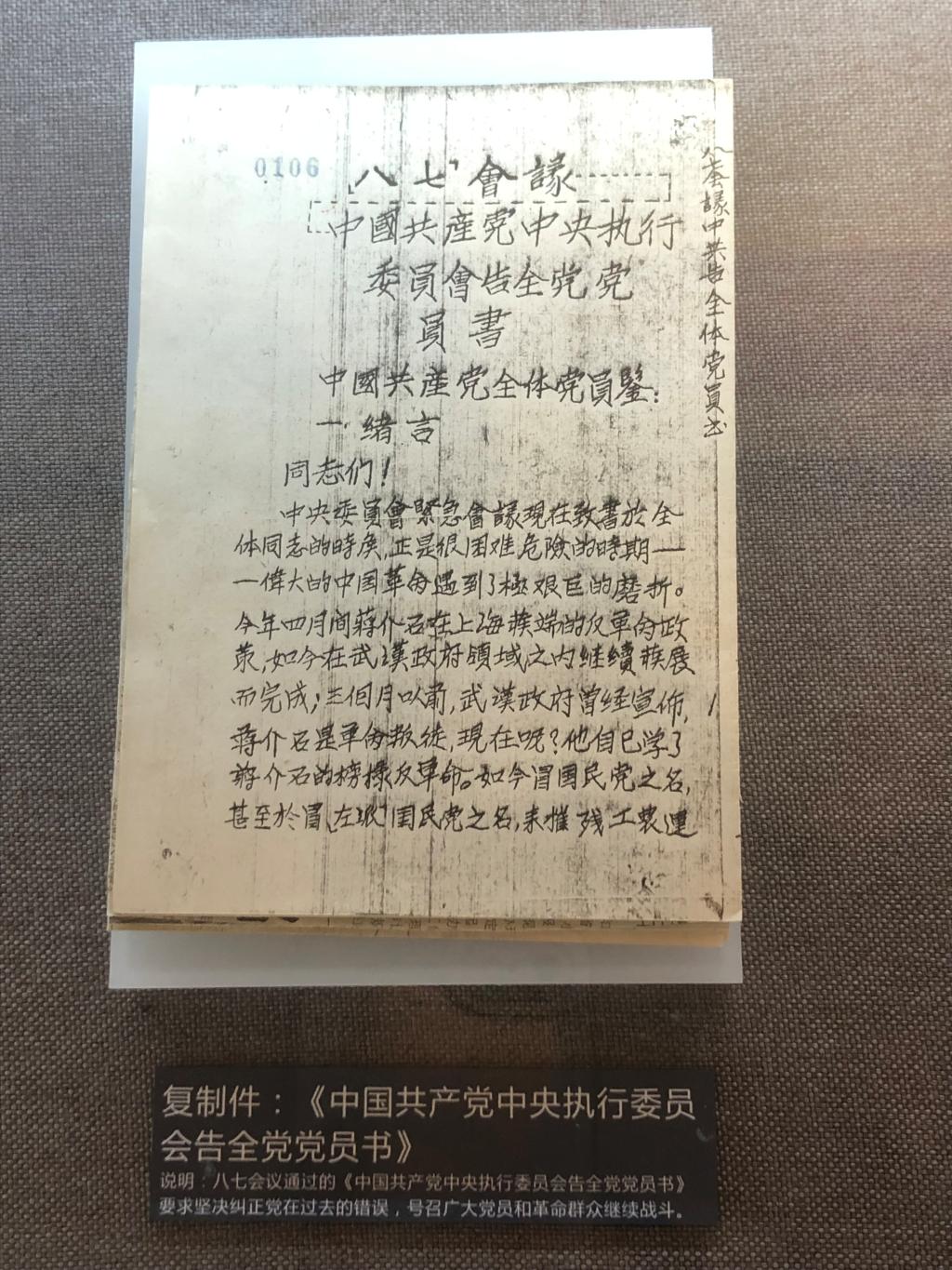 《中国共产党中央执行委员会告全党党员书》2023年7月27日于八七会议会址纪念馆
