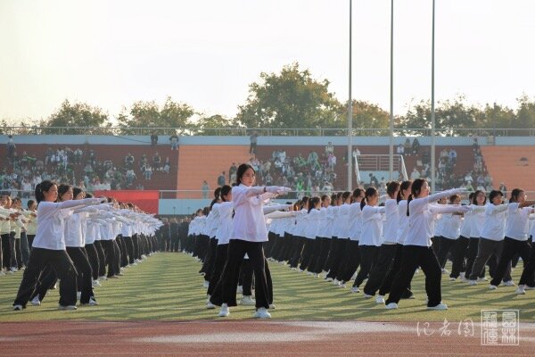 伴随着轻快的音乐,运动场上的师生舒活筋骨,跟随着指令不断变换动作,洋溢出灿烂的笑容。全民健身运动结束后,学校体育运动委员会主任、副校长青平宣布运动会正式开幕。本次开幕式圆满结束。