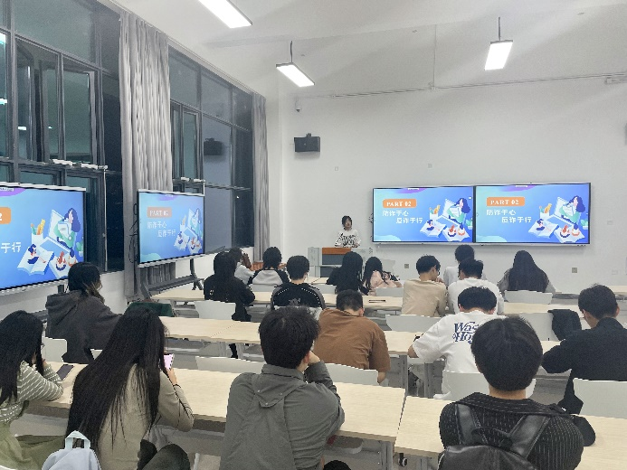 2023年10月31日晚,23级园林学硕班在襄阳书院12栋教学楼113教室举办 “认识自己、悦纳自己、保护自己”心理健康及防诈骗宣传主题班会,心理委员张欣茹主持宣讲,全体同学参会。