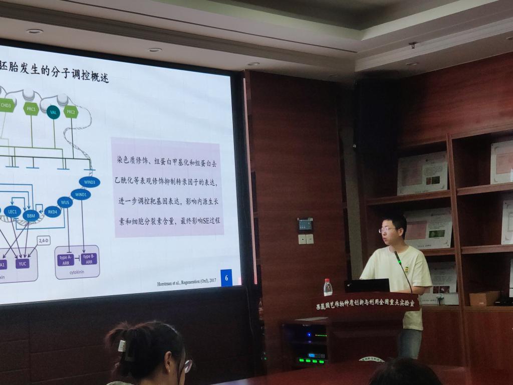 许忠平向大家介绍了“再生”是实现基因聚合的一种操作,其在基础研究、育种中有很重要的作用。目前与“再生”相关的研究是一个十分庞大的课题,2005年《Science》期刊将植物细胞全能性列为最重要的25个科学问题之一,截止目前学界对“再生”的三个重大问题均无确切的回答,足见这一课题内容非常复杂。