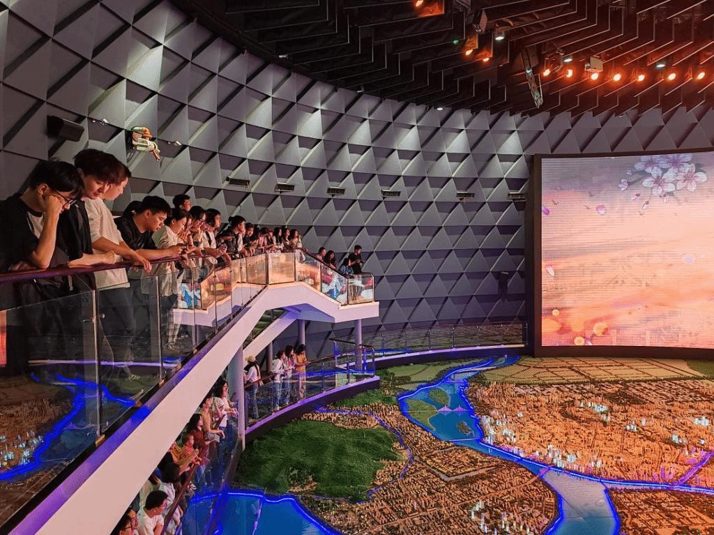 在规划展览馆内,讲解员从历史文化着手描绘了襄阳的荆楚风情,从交通、校园建设、科技发展等方面向大家描写了襄阳的美好前。规划馆采用现代声光电技术打造城市总规沙盘秀,美轮美奂、视觉效果震撼。除了弧幕数字沙盘,展厅一楼的全息影像体验空间,也再现了城市波澜壮阔的历史画卷。