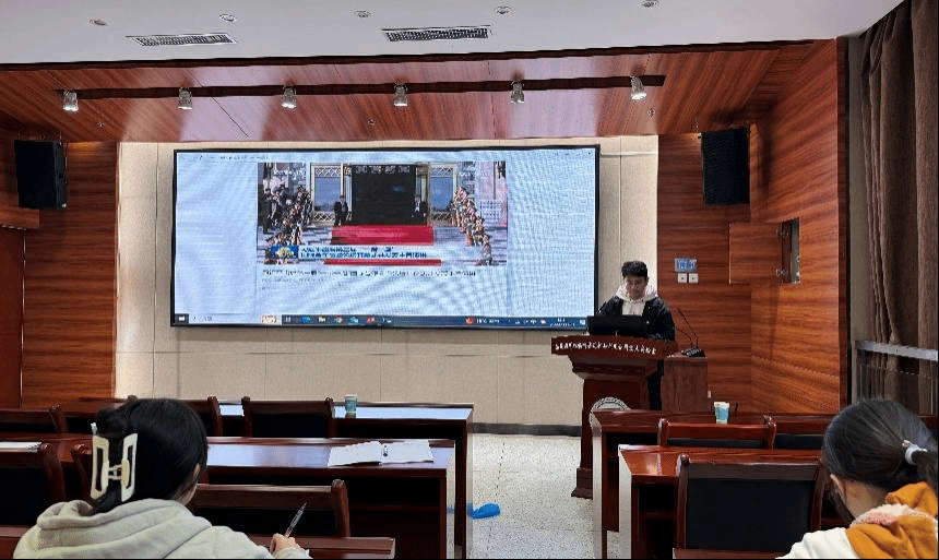 活动伊始,主讲人通过播放视频素材向全体与会同学讲解了过去10年“一带一路”取得的成绩,同时解读了“八项行动”的具体内容,同学们认真观影并深入学习习近平总书记的主旨演讲。习近平总书记指出,今年是提出共建“一带一路”倡议10周年。提出这一倡议的初心,是借鉴古丝绸之路,以互联互通为主线,同各国加强政策沟通、设施联通、贸易畅通、资金融通、民心相通,为世界经济增长注入新动能,为全球发展开辟新空间,为国际经济合作打造新平台。