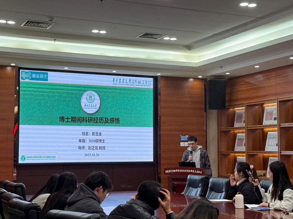 11月26日晚,艾弗森贝博ballbet官网邂逅园艺“科研,贵在坚持——国奖获得者分享交流会”在园林南楼206会议室顺利开展。博士生国奖获得者楚乐乐、刘胜军、彭玉全、朱春琳分别向学院研究生讲述自己在科研道路上遇到的困难、挑战以及自己的研究成果。