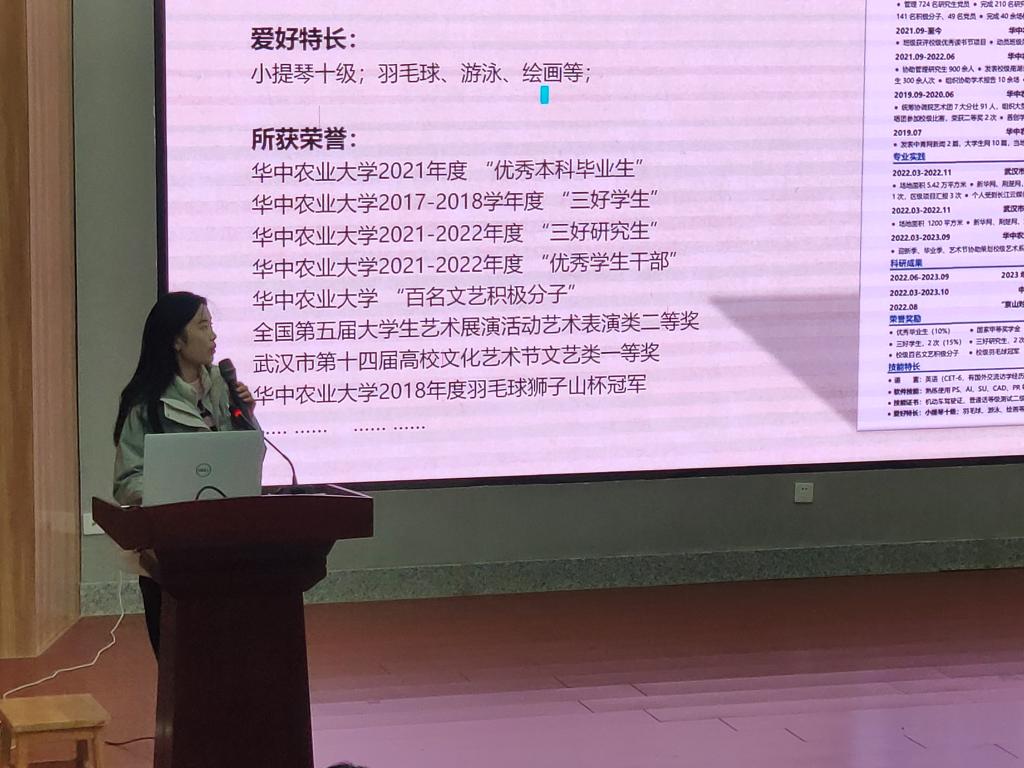 周俣轩在求职就业经验分享环节当中,围绕“要不要以专业为导向找工作”为核心,向在座研究生分别介绍了其在求职过程中每一阶段的心得。她围绕自身的基本情况、考试经历和经验总结三个部分进行分享,并分享了三点经验:一是准备简历时要突出优势,有重点的针对不同岗位进行准备;二是全面关注招聘信息;三是多积累面试经验。她指出,训练面试能力时要注意多练习,同时,找有经验的老师进行点评也十分重要。