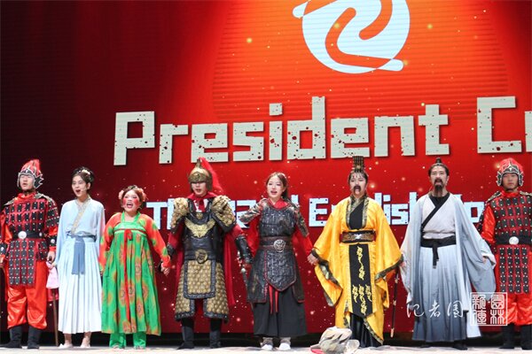所有表演结束后,校长李召虎作英文致辞。他宣布了本次活动的圆满结束,感谢全体工作人员呈现的完美演出,肯定了团队合作的力量,并鼓励台下的同学们勇于站上舞台,展现自我风采。另外,他强调了文化在语言传播中的重要性,并以《花木兰》《梁山伯与祝英台》为例,告诉同学们要向世界讲好中国故事。