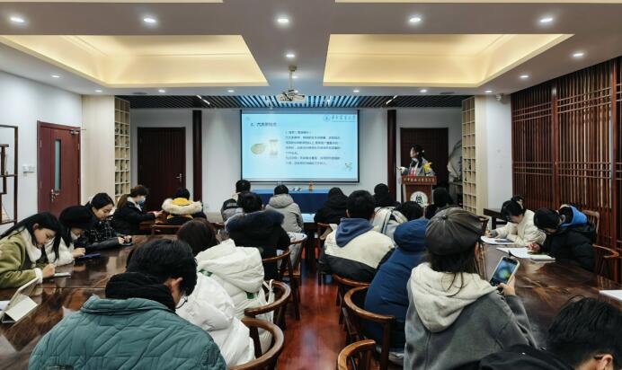 接着,陈雪丽以一场生动的科学讲座,揭示了茶叶的奥秘。她从茶叶的分类、冬日适宜茶饮的推荐,以及园林院特色茶品三个方面展开介绍。陈雪丽以六大茶类的发酵程度与茶香的关系为切入点,使同学们对绿茶、黄茶、白茶、青茶、红茶和黑茶这六大茶类的特性有了全面的认识。她依据时节特点,建议同学们在冬季饮用熟普洱和桂圆红枣茶以暖胃驱寒,同时还着重介绍了贝博ballbet官网黄友谊、倪德江两位教授课题团队研发的特色茶品,如:伍家台贡茶、赤壁青砖茶、老君眉茶等。这些茶品不仅彰显了产地特色,还融合了科研智慧,堪称优异之作。