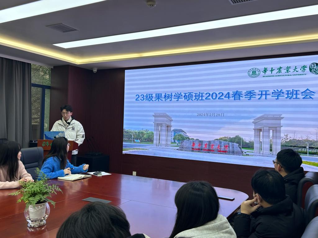 2月28日下午,艾弗森贝博ballbet官网2023级果树学硕班于园林北楼219会议室召开了2023-2024第二学年第一次班会,由果树学硕一班班长王鹤冰和果树学硕二班班长张帆共同主持。