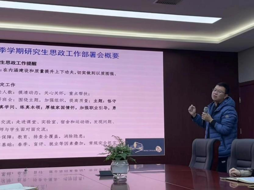 辅导员肖晗老师再次强调了两会的重要精神和对研究生群体就业指导的意义,同时带领大家共同学习了2024春季学期研究生思政工作部署会概要。强调研究生应当恪守学术规范,强调班级凝聚力的培养、注重家国情怀,牢记时代使命,关注社会现实。