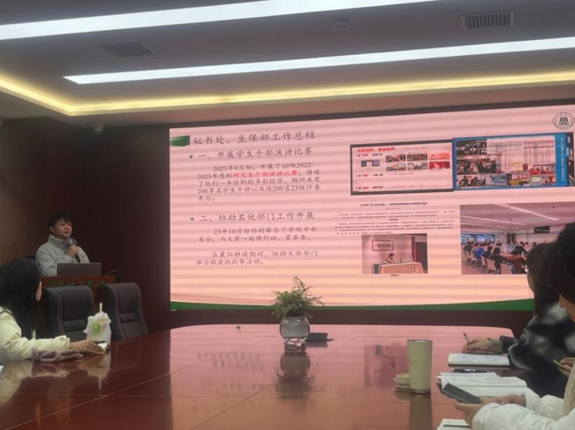 文体部总负责人党龙汇报学期工作内容