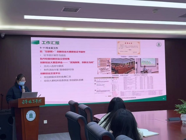 创新创业部门总负责人尹易寒汇报学期工作内容