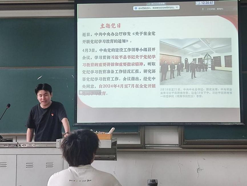 4月25日,学院各学生党支部利用周四下午集中学习时间,深入学习习近平总书记关于党纪学习教育的重要讲话和重要指示精神、党中央新修订的《中国共产党纪律处分条例》(以下简称“条例”)等内容,聚焦主题,学研结合,扎实开展党纪学习教育主题党日活动。
