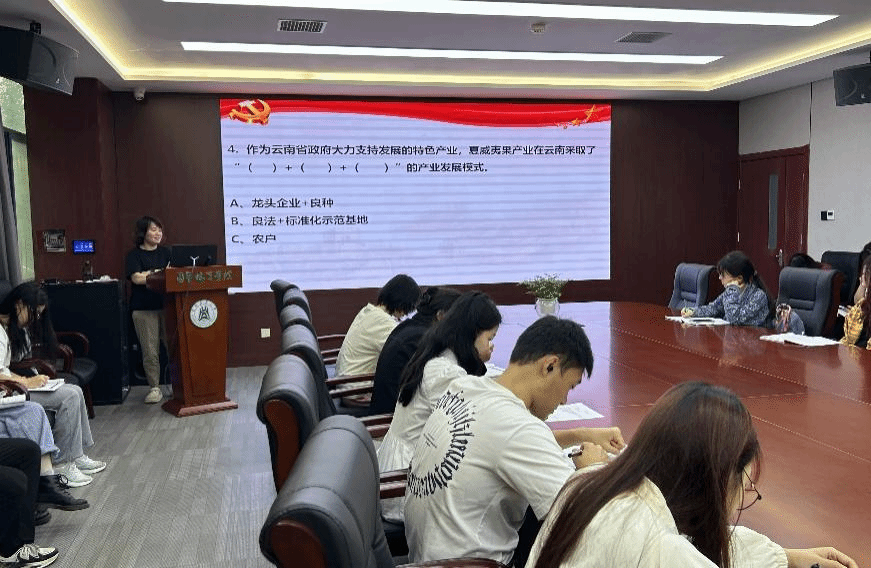 活动伊始,工作人员通过播放视频素材向全体与会同学分享了一名村支书的日常巡边工作,同学们认真观影并深入了解到了支书小依努力为村民们谋事做生计规划,一直坚守在基层的工作岗位的故事。